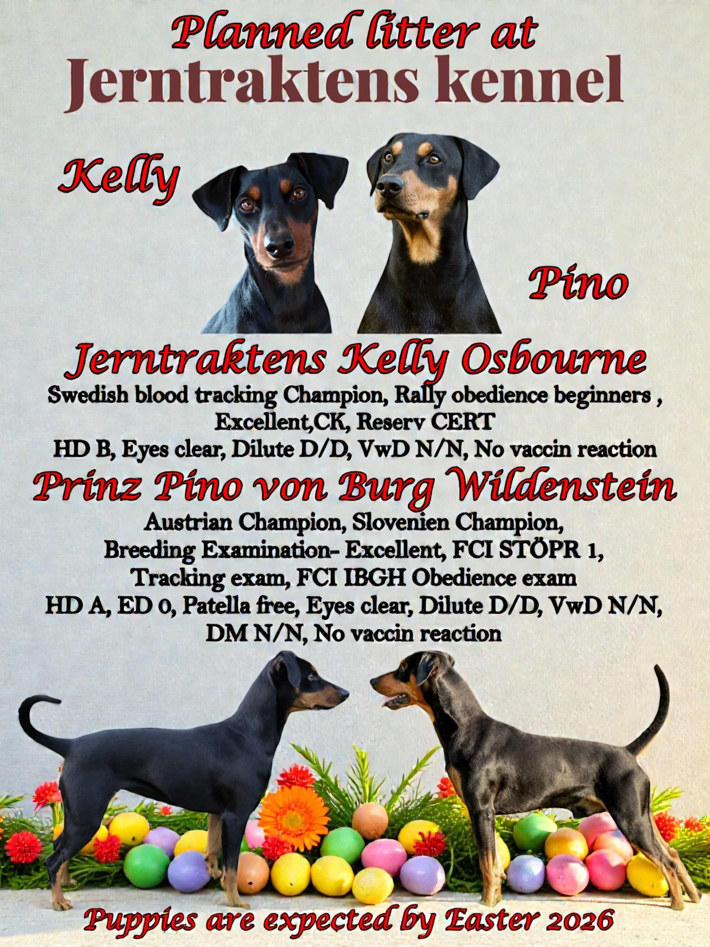Vi planerar nu våran M-kull med leverans till sommaren 2026. Mamma till kullen kommer vara vår alldeles egna Jerntraktens Kelly Osbourne. Kelly är en tik på 5 år med en höjd på 45 cm, väger ca 14 kg och är ögonlyst UA. Hon är röntgad med HD B och hon har även gjort BPH. Utställd med Excellent och CK...
